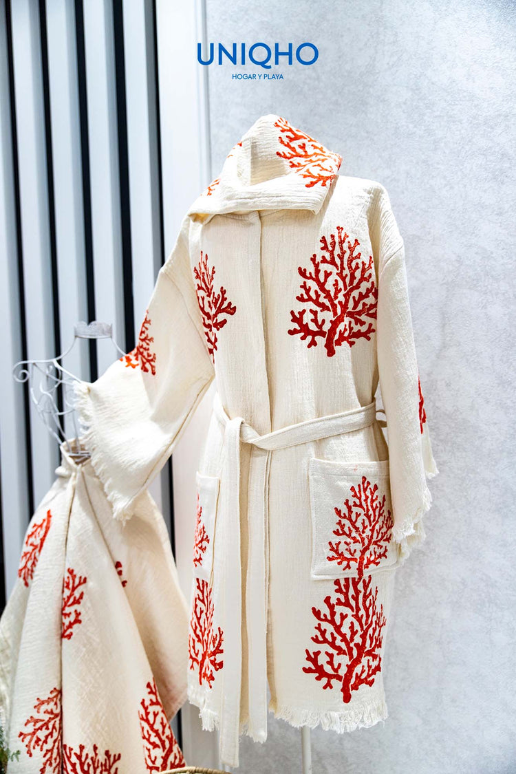 Kimono, Albornoz, Impresión con Bloques Madera, Flor de la Vida